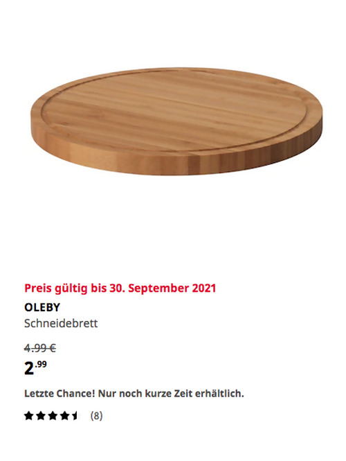 IKEA OLEBY Schneidebrett, Bambus rund, 23 cmAngebot gültig bis 30. September 2021 bei IKEA Würzburg, gilt nicht für einen Kauf über Click & Collect und solange der Vorrat reicht.
