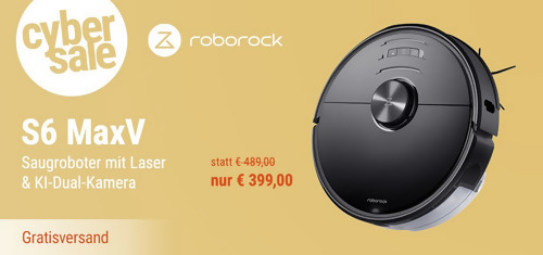 Cyberport bietet bis zum 07.07.21 9 Uhr im Laufe der Cyber Sale - Aktion den Roborock S6 MaxV Saugroboter in Schwarz für 399€ inkl. Versand an, solange der Vorrat reicht. Hinweis: den Button "Für kurze Zeit noch günstiger" anklicken, um zum reduzierten Preis kommen oder nach der Eingabe von Gutscheincode: CYBERSALE210706. Saugroboter mit Laser und Kamerasensoren, erfasst Hindernisse im Weg Saugfunktion mit einer ultrahohen Saugleistung von 2.500 Pa Wischfunktion mit raumspezifischer Regelung der Wischwassermenge für eine Wischfläche von bis zu 200 m² (300ml Tank) speichert Karten mehrerer Stockwerke, selektive Raumreinigung Hindernisüberwindung bis zu 20 mm (z.B. Leisten, Teppiche etc.) bis 2,5h Akkulaufzeit, ca. 240qm Staubbehälter-Volumen: 0,48 l Abnehmbarer & waschbarer Wischmop & HEPA Filter Steuerbar per Smartphone & Sprachassistenten (z.B. Alexa) Inkl. Ladestation Dieser gründliche Saug- und Wischroboter gegen den täglichen Dreck und Staub wurde von Amazon Kunden mit sehr guten 4,7 Sternen benotet (1074 Sternebewertungen).