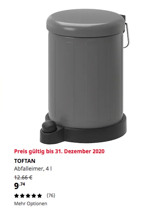 IKEA TOFTAN Abfalleimer, grau, 4 lAngebot gültig bis 31 Dezember 2020 bei IKEA Berlin-Tempelhof, solange der Vorrat reicht.