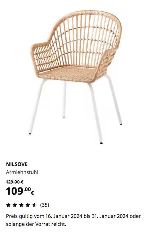 NILSOVE Armlehnstuhl, Rattan/weißAngebot gilt bis 31. Januar 2024 bei IKEA Hamburg-Moorfleet, gilt nicht für einen Kauf über Click & Collect und solange der Vorrat reicht.