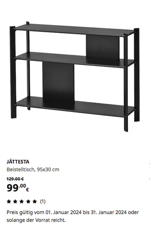 JÄTTESTA Beistelltisch, schwarz, 95x30 cmAngebot gilt bis 31. Januar 2024 bei IKEA Kamen, gilt nicht für einen Kauf über Click & Collect und solange der Vorrat reicht.