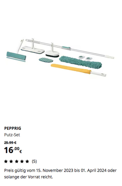 PEPPRIG Putz-SetAngebot gilt bis 01. April 2024 bei IKEA Kassel, gilt nicht für einen Kauf über Click & Collect und solange der Vorrat reicht.