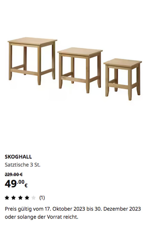 SKOGHALL Satztische 3 St., EicheAngebot gilt bis 30. Dezember 2023 bei IKEA Rostock, gilt nicht für einen Kauf über Click & Collect und solange der Vorrat reicht.