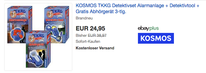 Ambiente-3000 bietet aktuell bei eBay das 3-teilige KOSMOS TKKG Junior Detektivset NEU&OVP für 24,95€ inkl. Versand an, solange der Vorrat reicht.