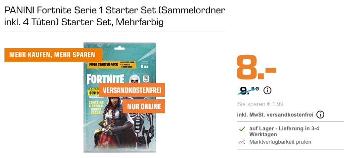 Das PANINI Fortnite Serie 1 Starter Set bekommt man im Laufe dieser Aktion für 8€ inkl. Versand.