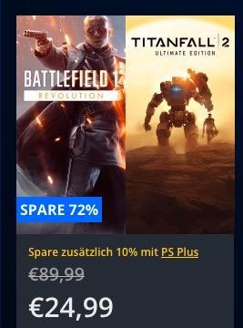 Playstation Store bietet bis zum 09.06.18 12:59 ausgewählte PS4-Spiele als Download bis 60% billiger an. Beispiel: Battlefield™ 1 & Titanfall™ 2 Ultimate Bundle