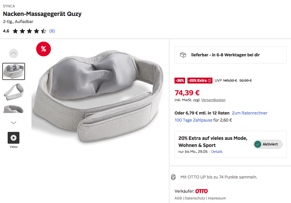 Otto.de - mind. 20% Rabatt auf Mode, Wohnen & Sport: z.B. SYNCA Nacken-Massagegerät Quzy