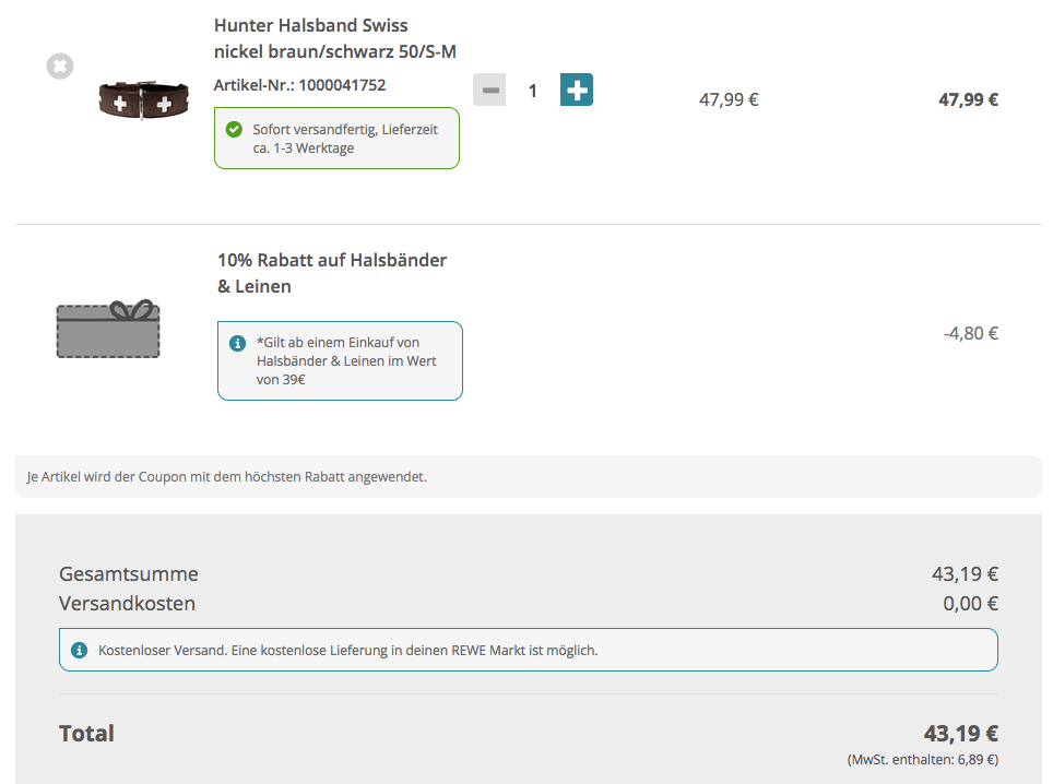 Das Hunter Hundehalsband Swiss nickel braun/schwarz 50/S-M bekommt man im Laufe dieser Aktion für inkl. Versand.