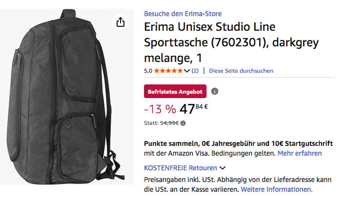 Amazon Kunden haben diese praktische Sporttasche mit 5 Sternen benotet (2 Bewertungen).