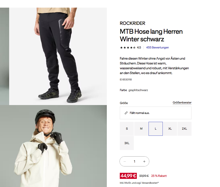 Die ROCKRIDER MTB Hose lang Herren Winter schwarz in Größen S - 3XL bekommt man im Laufe dieser Aktion für 44,99€ zzgl. 4,99€ Versand, Filialabholung ist versandkostenfrei.