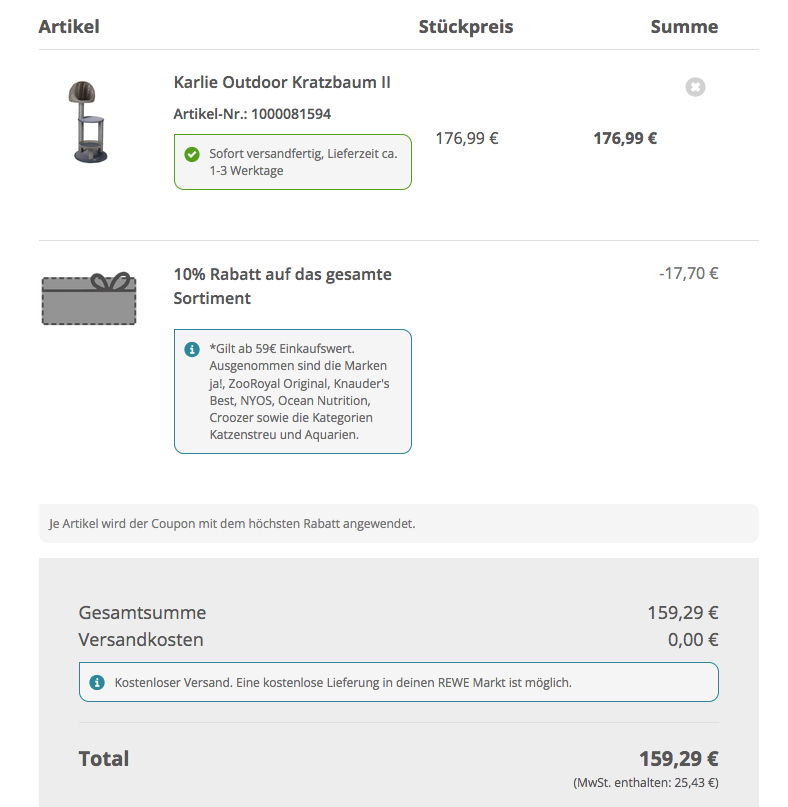 Den Karlie Outdoor Kratzbaum II bekommt man im Laufe dieser Aktion für 159,29€ inkl. Versand.